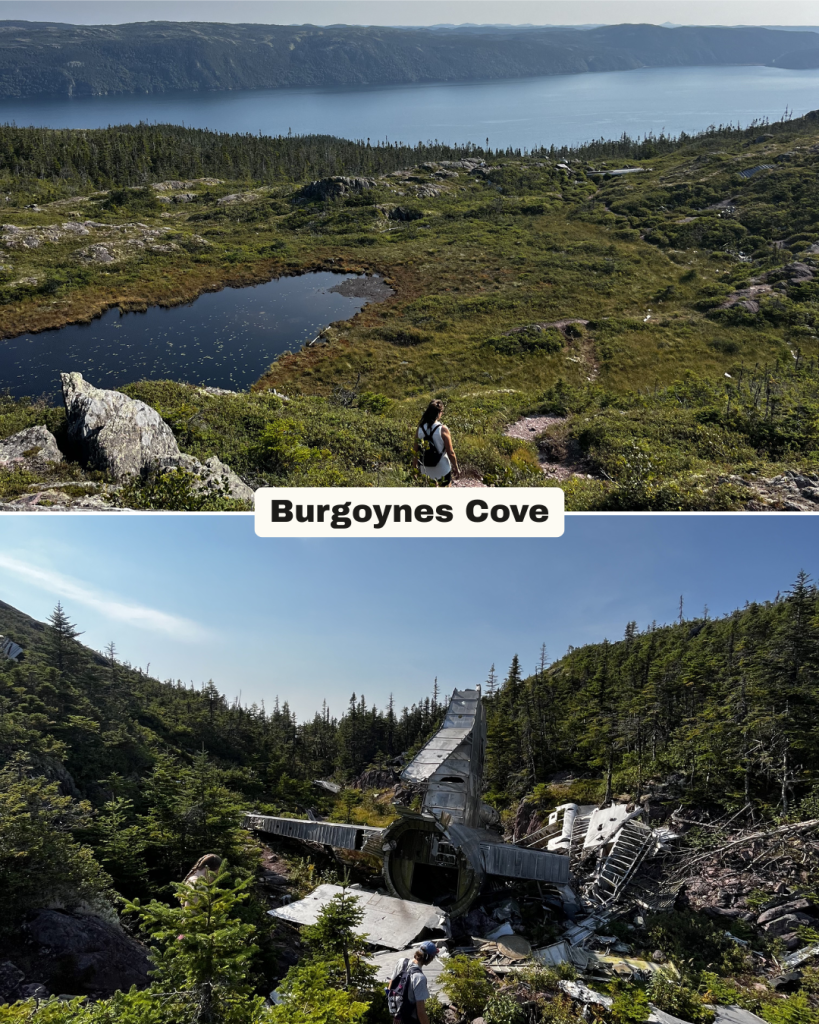 Burgoynes Cove, roughly 40 minutes from Clarenville, is a hike that tells a very interesting story. In this region in 1953, an American plane got lost in poor weather and crashed amongst the hills. Unfortunately, that was not the only tragedy to occur as the rescue plane sent to find the first wreckage was also overcome and crashed into the back country – all people from both planes were lost in the event.