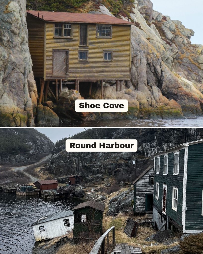 The abandoned town of Round Harbour was once a thriving fishing community. Today, no one lives in the community; however, some former residents do maintain properties there as cottages for summer use. Currently, the gravel road is poorly maintained, but it is passable with care. For anyone who would like a prime example of what old Newfoundland was like, this is a must-see.